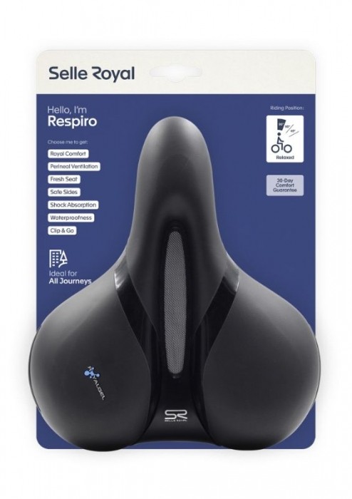 Aby zapewnić całkowity komfort, który można dostosować zarówno do dojazdów do pracy w mieście, jak i do przejażdżek rekreacyjnych poza miastem, Respiro to powiew świeżego powietrza. Jako wiodące siodło w ofercie Selle Royal, Respiro zapewnia orzeźwiające, chłodne przejażdżki dzięki unikalnemu kanałowi wentylacyjnemu, który wspomaga oddychalność i łagodzi nacisk w okolicy krocza. Innowacyjny materiał pokrycia Respiro odbija światło słoneczne, obniżając temperaturę powierzchni, a wyściółka Royalgel™ zapewnia optymalne wsparcie, dostosowując się do ruchów ciała w ruchu.